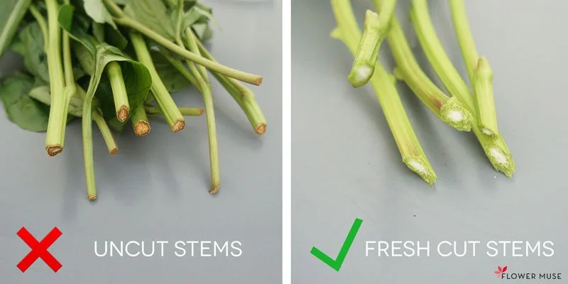 Freshly cut the stems of the bouquet (at an angle preferably)